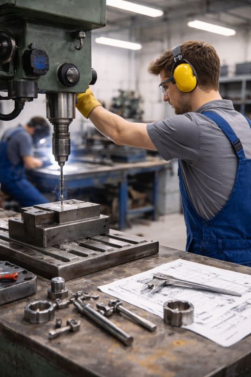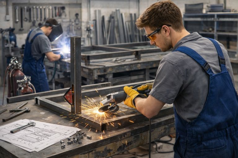 Konstruktionsmechaniker/-innen bearbeiten Bleche, Rohre oder Profile durch manuelle und maschinelle Fertigungsverfahren.